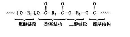 聚醚酯彈性纖維是由聚酯和聚醚共聚物通過熔融紡絲制得的彈性纖維,日本帝人公司于 1990 年首次生產(chǎn)。聚醚酯彈性纖維與聚氨酯彈性纖維結(jié)構(gòu)類似,也具有“區(qū)段”結(jié)構(gòu)特征。“軟”鏈段主要是聚醚鏈段,柔軟性好,鏈較長,容易伸長變形;“硬”鏈段則是聚酯鏈段,相對(duì)較僵硬,易于結(jié)晶,鏈較短,在纖維受力變形時(shí)起節(jié)點(diǎn)作用,賦予彈性回復(fù)性能,并決定纖維的強(qiáng)力和耐熱性。