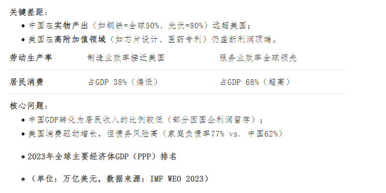 中國和美國的GDP統(tǒng)計口徑存在顯著差異,這些差異不僅影響兩國經(jīng)濟(jì)規(guī)模的直接比較,還可能掩蓋部分真實經(jīng)濟(jì)實力。以下從統(tǒng)計方法、覆蓋范圍、價格調(diào)整、隱性經(jīng)濟(jì)等方面分析,并結(jié)合經(jīng)濟(jì)結(jié)構(gòu)、科技實力、民生水平等探討雙方的真實經(jīng)濟(jì)實力。